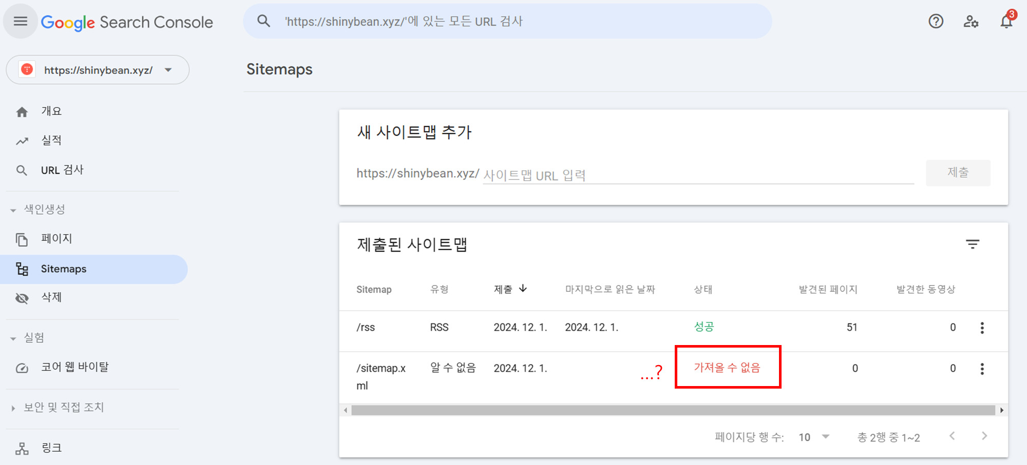 3. 구글 서치 콘솔로 넘어가게 된다. Sitemaps을 클릭해 보자