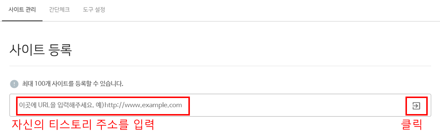 3. 자신의 티스토리 주소 기입 후 옆 화살표 그림을 클릭한다.